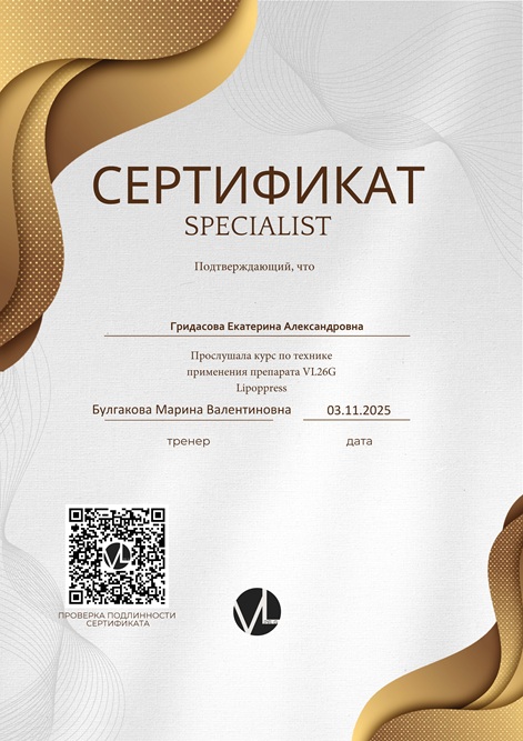 Сертификат Специалиста Гридасова Екатерина Александровна
